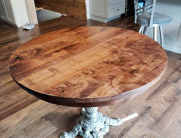 This gorgeous round table with leaf-extensions was hand constructed from nicely figured, locally milled Walnut lumber. We love the combination of this beautiful wood and the unique cast-iron vintage table base. This table is a wonderful addition to this beautiful Chicago home.
