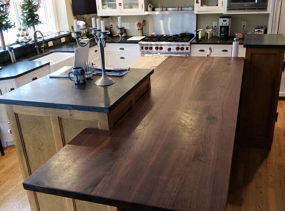 This beautiful custom walnut counter top with an oil finish ties this kitchen together as a central family gathering point.